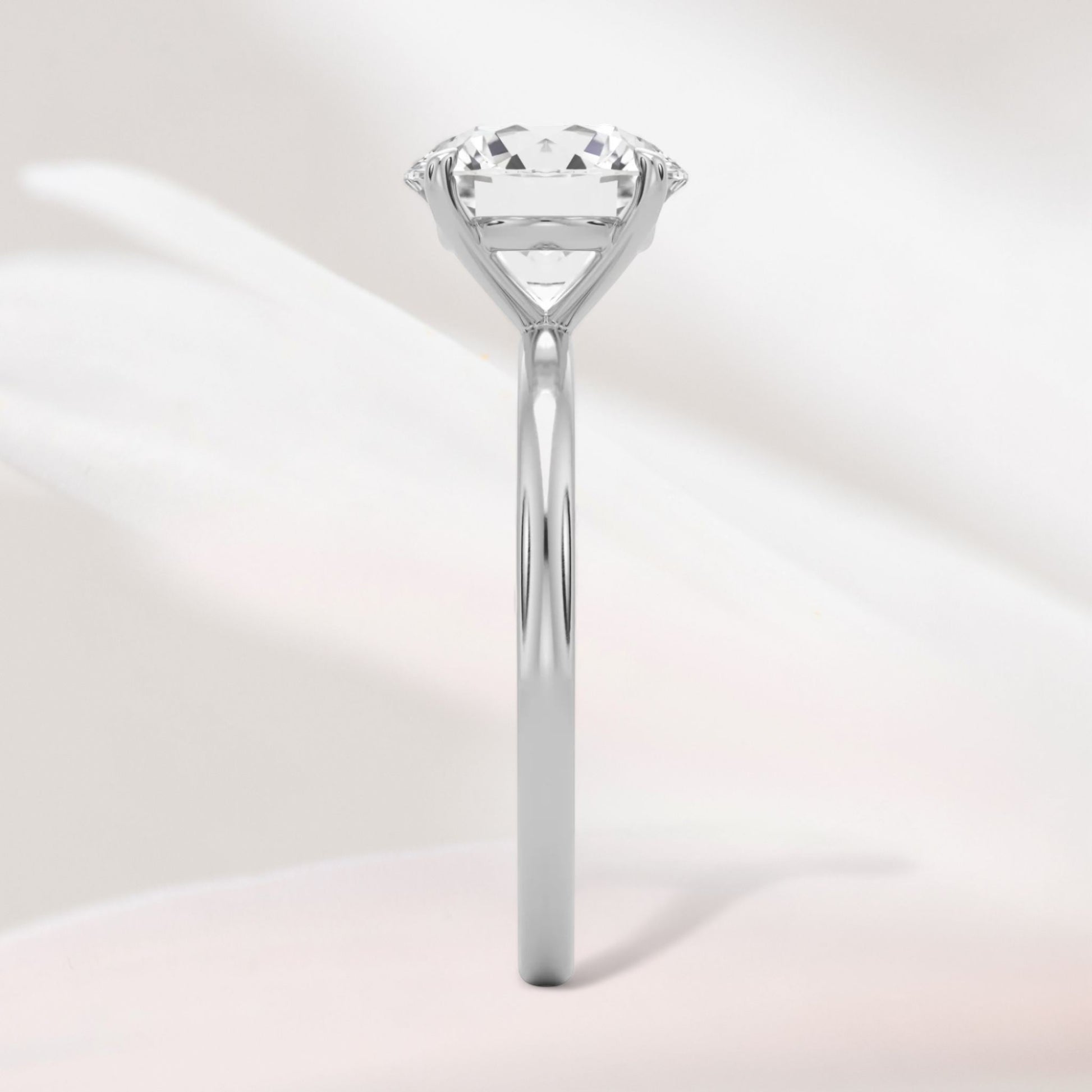 The Amaral Solitaire Round Four Prong Ring in white gold is a stunning, classic choice for those seeking timeless elegance. Crafted in 14K white gold, the design features a round brilliant-cut moissanite stone held securely by a four-prong setting. This minimalist yet sophisticated look allows the brilliance of the center stone to shine, making it perfect for both special occasions and everyday wear. Ideal for those who value versatility and understated luxury, this ring effortlessly transitions from casual to formal settings.