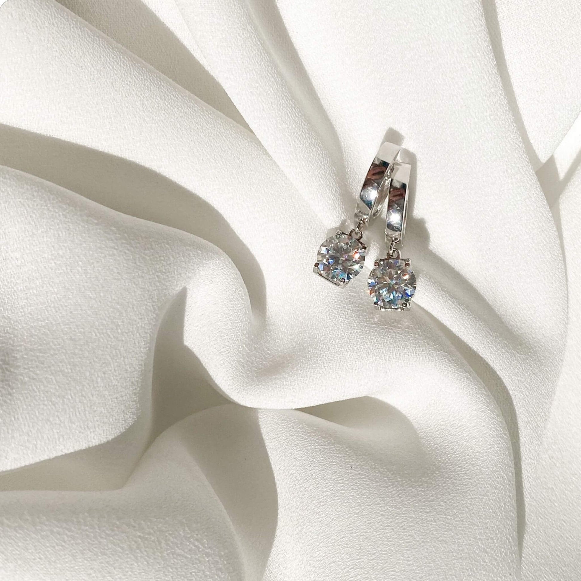 Korosta ulkonäköäsi upeilla pyöreillä moisaniitti riipuskorvakoruillamme. Nämä korvakorut on suunniteltu täydentämään mitä tahansa asua niiden trendikkään tyylin ja upean eleganssin ansiosta. 1 karaatin moissaniitti on täydellisen kokoinen lisäämään ripauksen säihkettä ja loistoa ulkonäköösi.