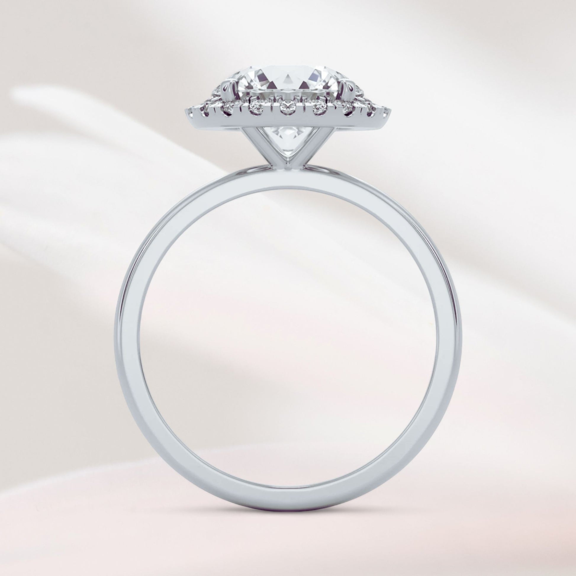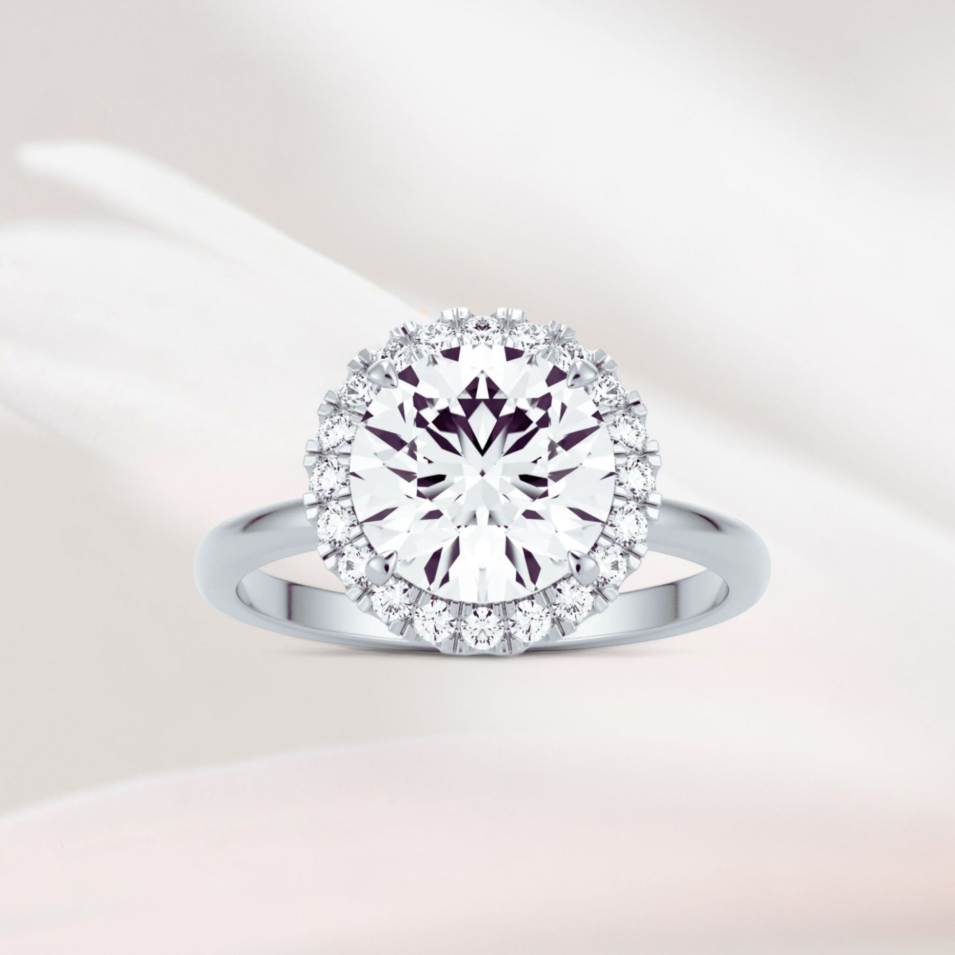 Tämä upea Halo Round -sormus 14k valkokullasta sisältää loistavan moissaniitin, joka on leikattu täydellisyyteen erinomaisella kirkkaudella (VVS1) ja värillä (D). Pyöreä moissaniitti on kehystetty pienemmillä, tarkasti asetetuilla kivillä, mikä lisää sormuksen kokonaisloistoa. Kovuusluokituksella 9,5 tämä jalokivi kilpailee timanttien kanssa kestävyydessä ja säihkeessä, tehden siitä ylellisen ja kestävän valinnan. Siro 1,8 mm leveä nauha korostaa sormuksen herkkää mutta hienostunutta vetovoimaa. Täydellinen mihin tahansa tilaisuuteen, tämä elegantti koru tarjoaa ajattoman ylellisyyden.