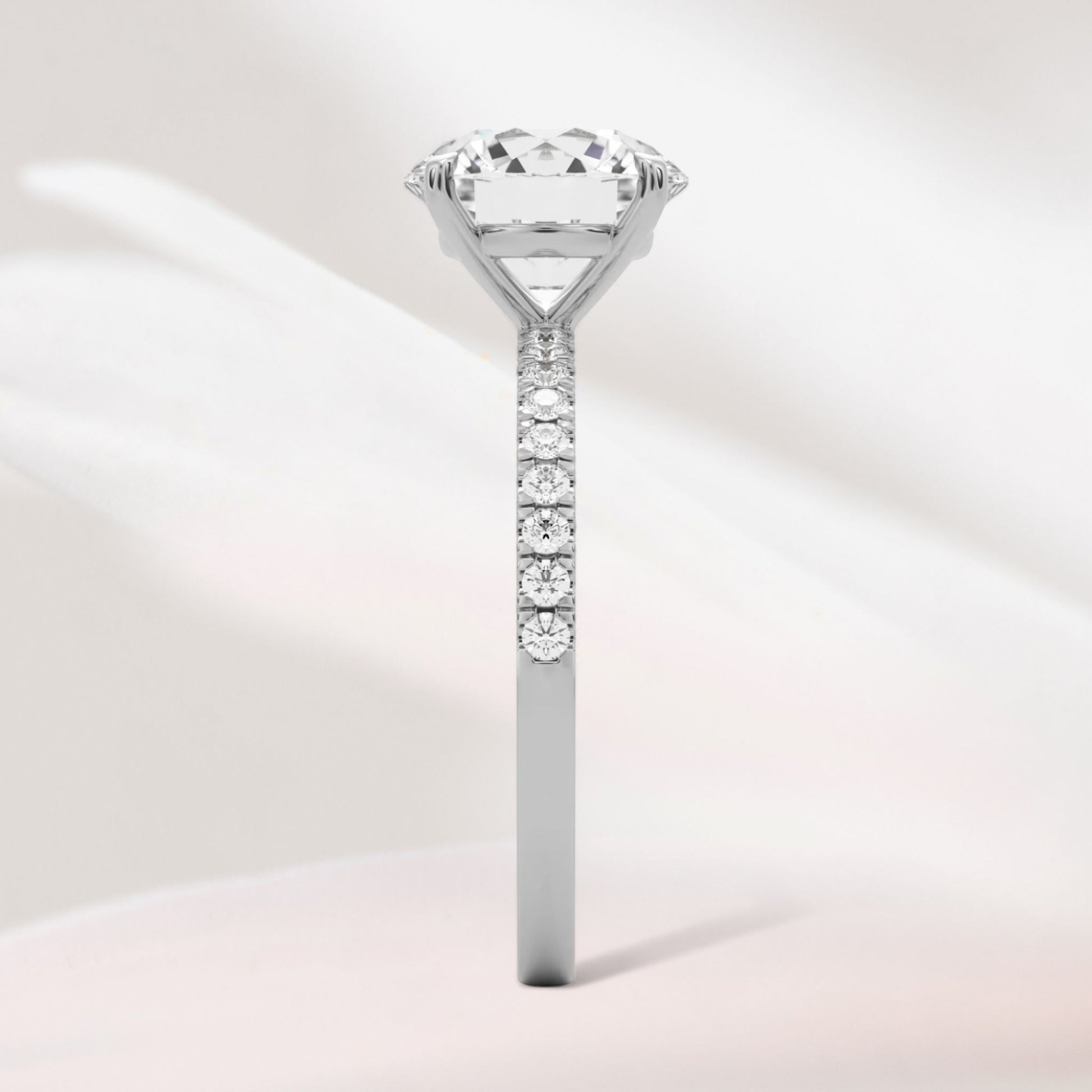 Tämä upea solitaire-sormus, valmistettu korkealaatuisesta sterlinghopeasta, sisältää pyöreähiotun moissaniitin, joka on turvallisesti asetettu klassiseen nelipiikkiseen istutukseen. Siro pavé pienemmistä moissaniiteista koristaa sormusta, tuoden lisäsäihkettä. Hopean hillitty kauneus tekee tästä sormuksesta ihanteellisen niille, jotka arvostavat yksinkertaisuutta ripauksella eleganssia. Suunniteltu sekä arkeen että erityisiin tilaisuuksiin, sterlinghopean kevyt kestävyys takaa mukavuuden pitkällä aikavälillä, tehden tästä huolettoman ja ajattoman valinnan mihin tahansa tilaisuuteen.