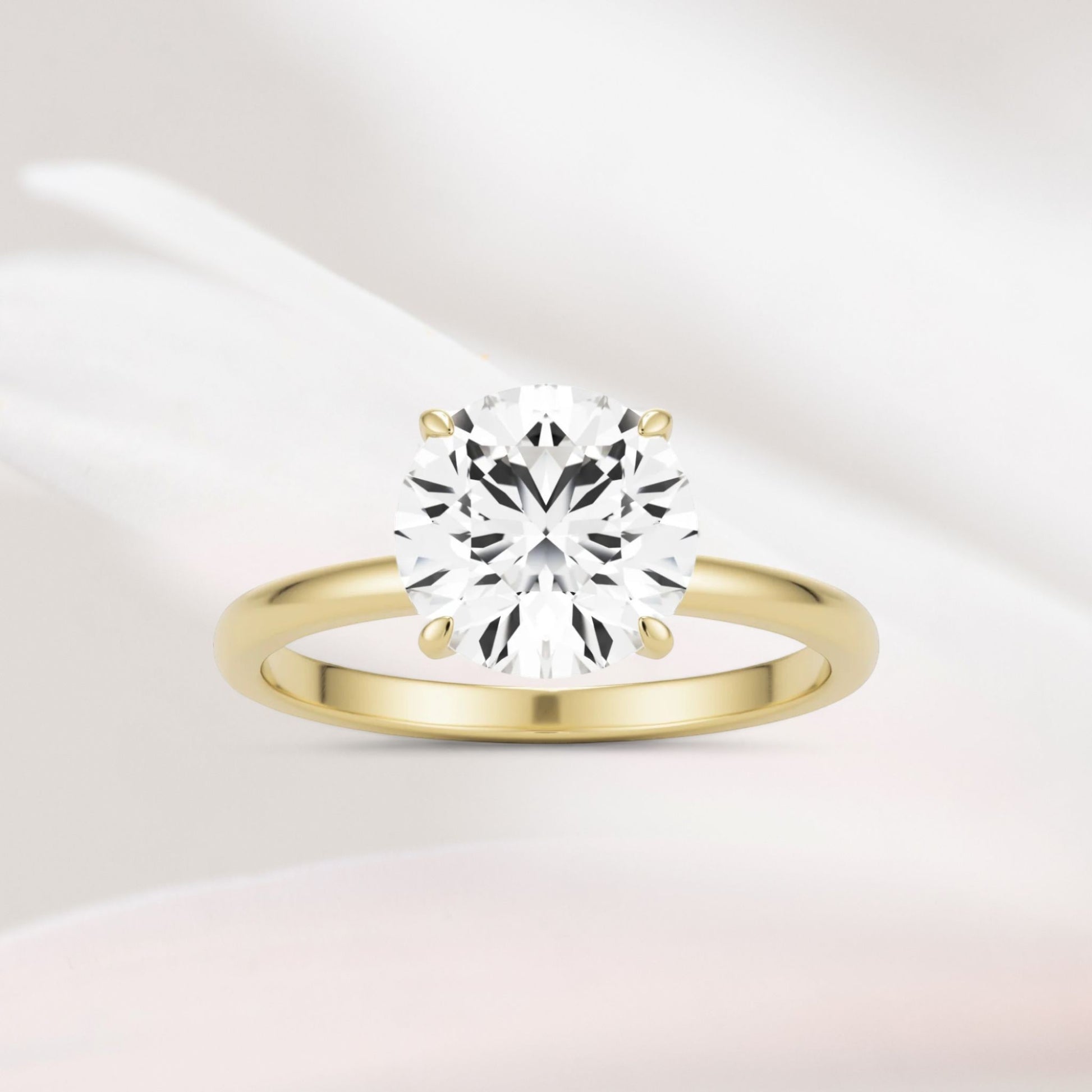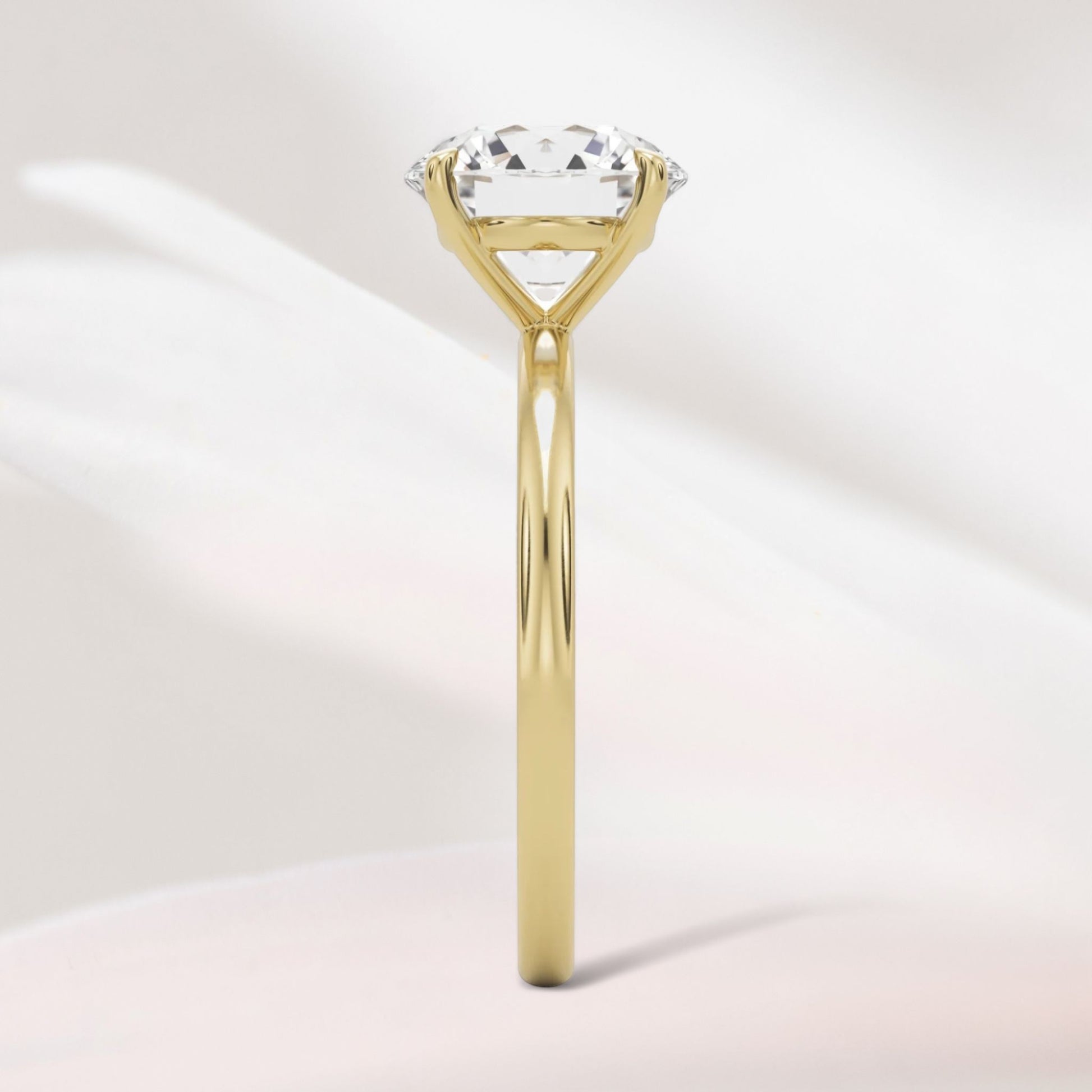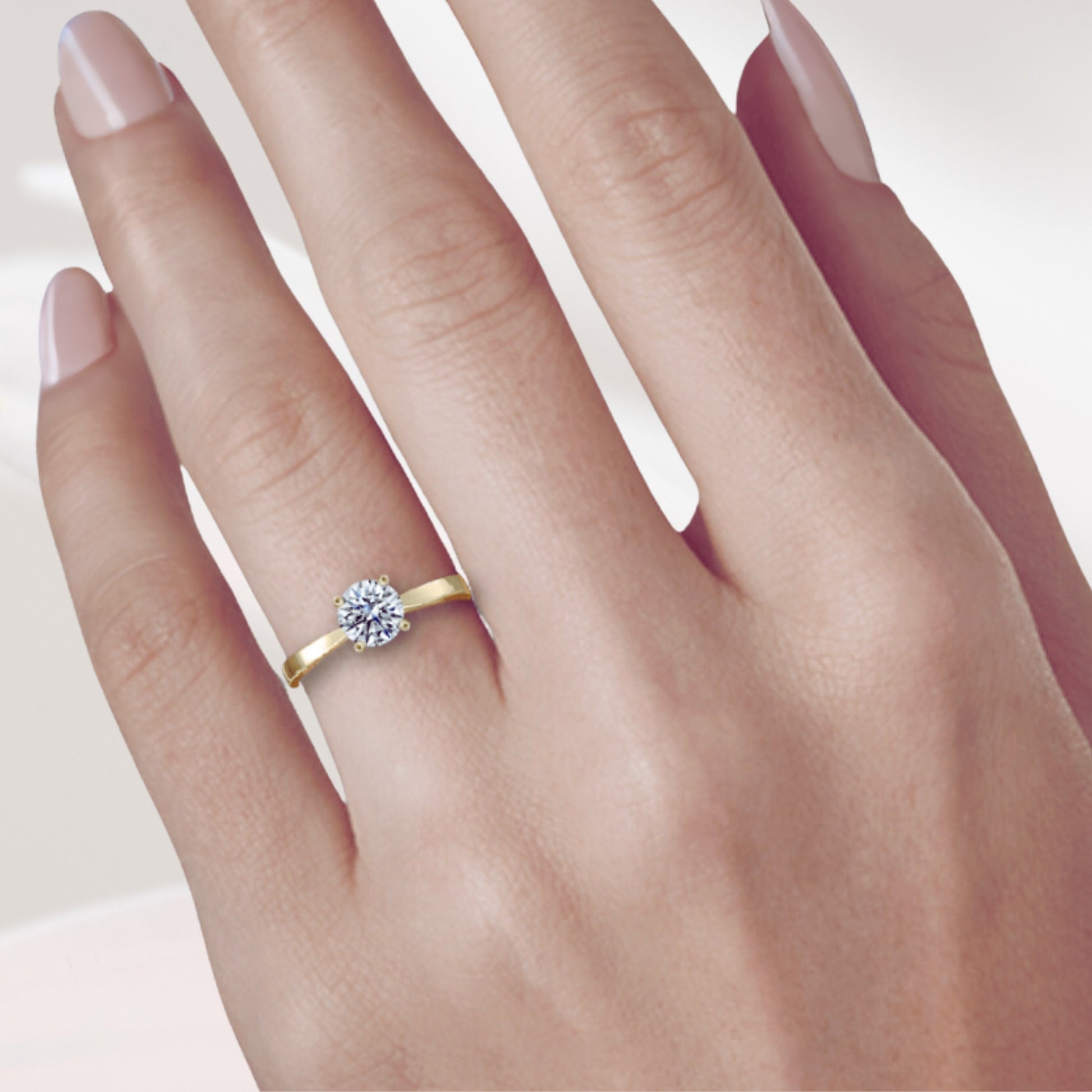 Amaral Solitaire Round Four Prong -keltakultasormus on täydellinen yhdistelmä ajatonta eleganssia ja modernia ylellisyyttä. Sen upea pyöreä moissaniittikivi on huolellisesti asetettu klassiseen nelipiikkiseen istutukseen, joka mahdollistaa valon vapaan virtauksen kiven läpi, korostaen sen loistoa. Tukeva keltakultainen nauha luo lämpimän ja säteilevän taustan, joka korostaa sormuksen ylellistä ilmettä. Tämä siro ja kestävä muotoilu on ihanteellinen päivittäiseen käyttöön, yhdistäen kauneuden ja käytännöllisyyden erinomaisella tavalla.